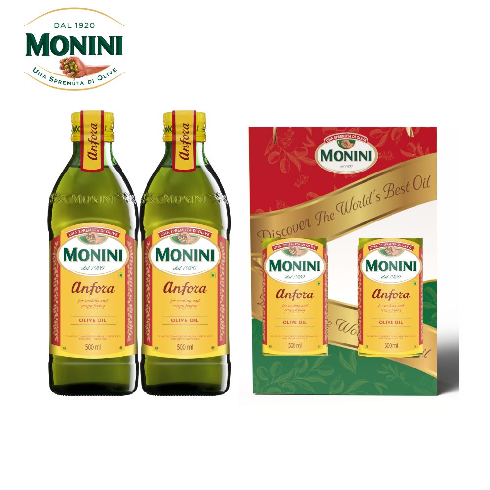 莫尼尼純橄欖油(Anfora) 具有淡雅的杏仁香味並帶有金黃色澤。比起多數的種子油,橄欖油更耐高溫。此款油品適合需要高溫烹調的食品,經高溫加熱而能使食物香脆、清淡和美味。莫尼尼純橄欖油(Anfora)不會破壞食物原有的美味,適用於煎、煮、炒、炸、蒸煮等。